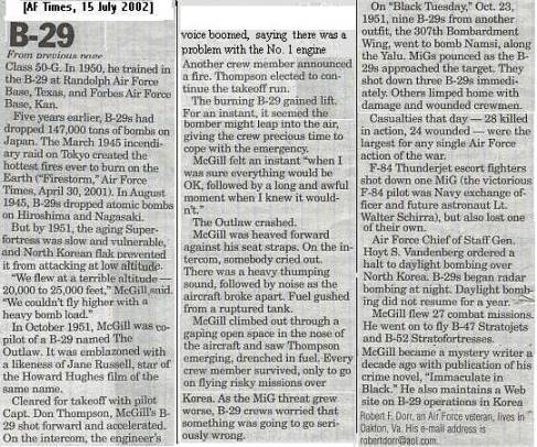 We need your help to keep the B-29s site online. Jim Doppelhammer, our longtime webhost, has passed away and his webserver will go offline in 2025. The entire Korean War Educator website must be migrated to a modern server platform before then. If you value this resource and want to honor our veterans by keeping their stories online after 2024, please donate now. For more information, click here.