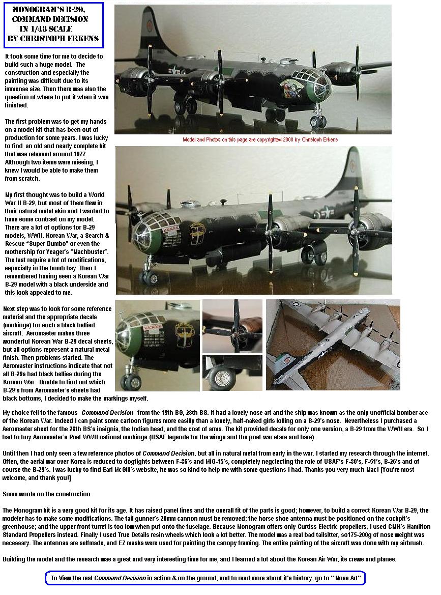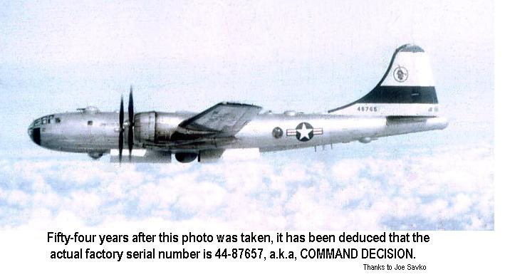 Remarkably, the color photo (that I took & restored) of a 28BS B-29 on a daylight bomb run has been identified as Command Decision.  Up until Joe Savko solved the conundrum, the tail number had been a mystery because no B-29 by that number had ever been manufactured.  Joe wrote, “(7657) had been in a SAC unit (and) SAC, in the name of secrecy, played games with their serial (numbers) … In fact, SAC had three phantom bomb squadrons on paper that it kept moving about early in the Cold War."