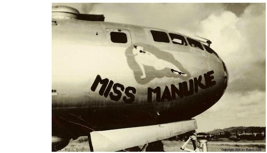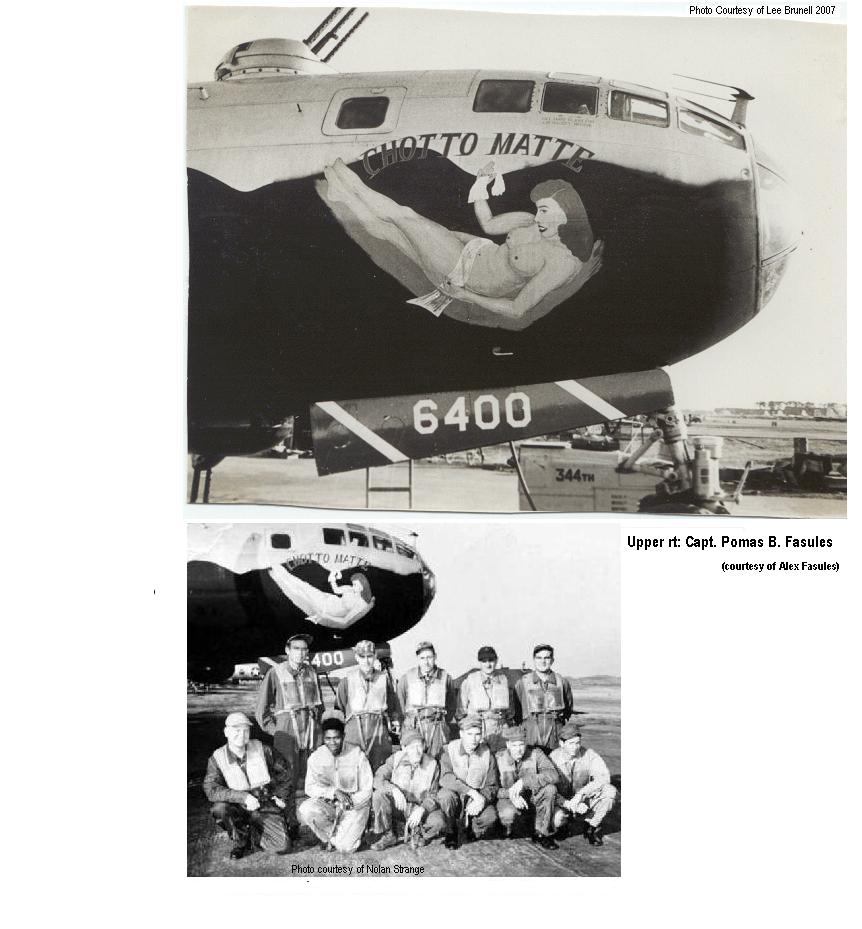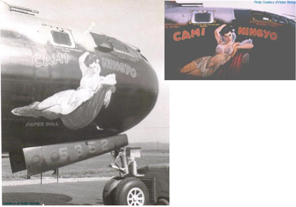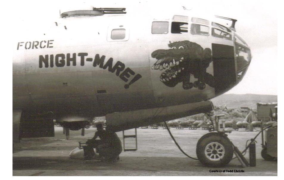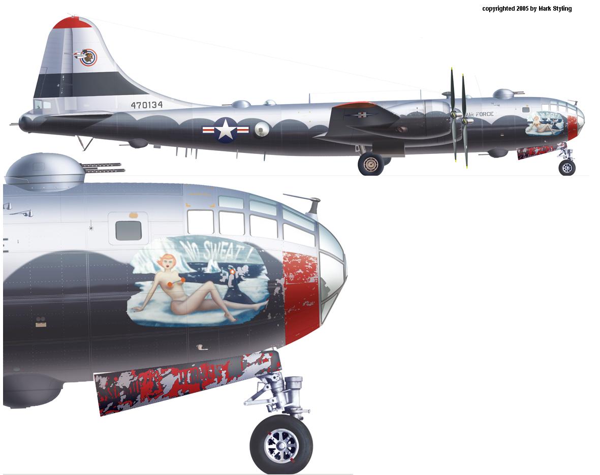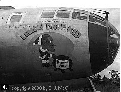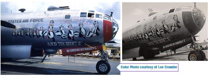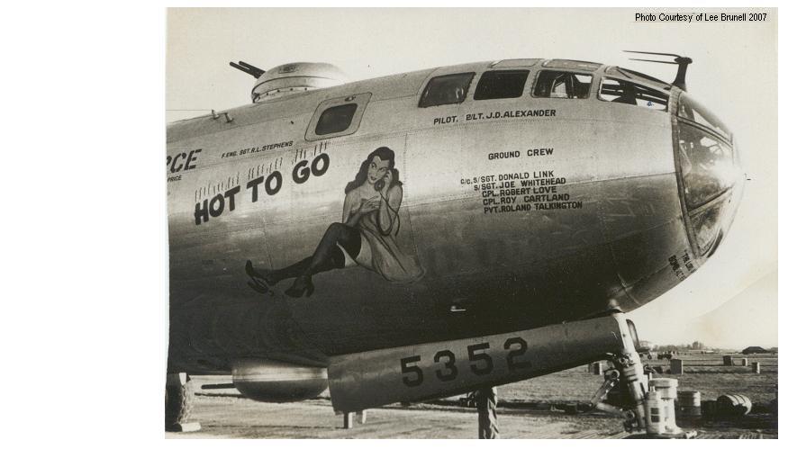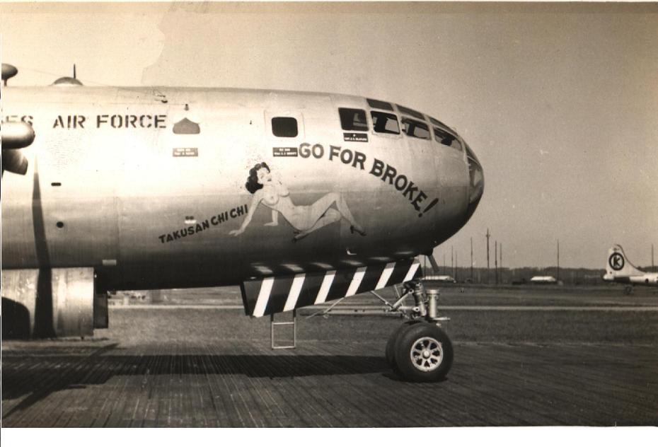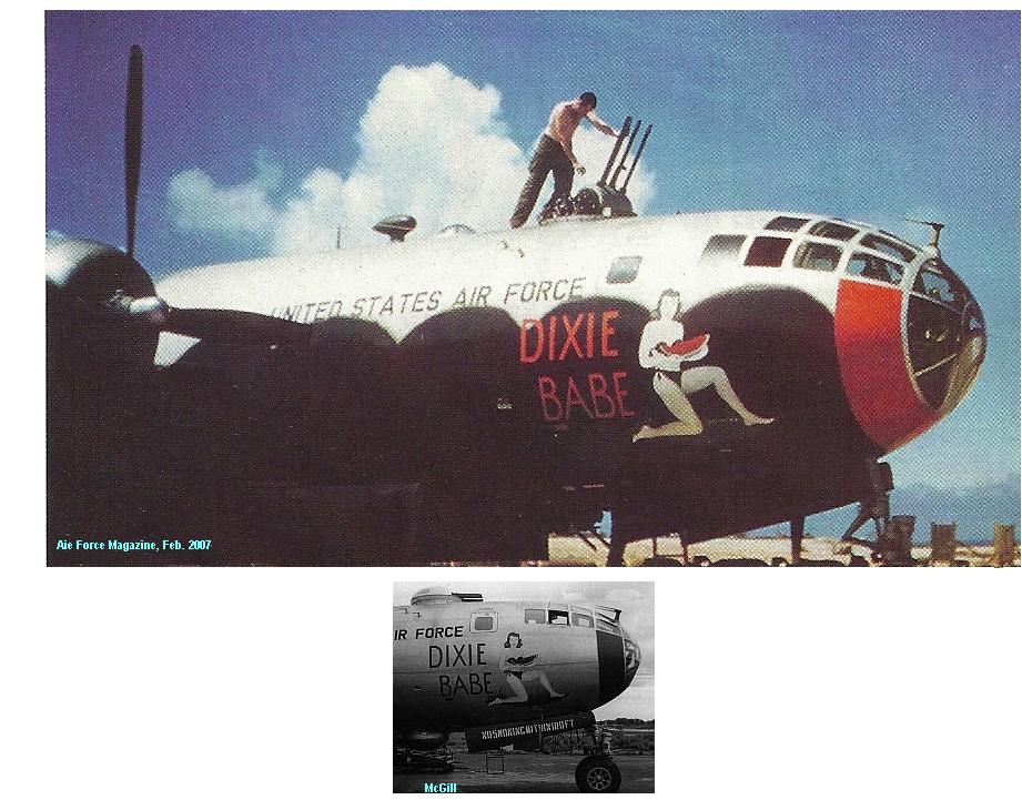 Information received in April 2005 confirmed that this was also the tail number of our assigned B-29.  We had planned to paint “Clusterphobia” on the nose, depicting four buxom SYTs prominently displaying their Air Medals. Alas, the lasses fell victim to Lemon Drop Kid, which took priority--and our artist’s free time.  Clusterphobia became only a memory.
