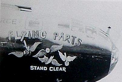 Flying Parts (Stand Clear) [6438] 92BG: Kadena.  Nose gear and assorted engine parts indicative of the reliability of the B-29 (not!).