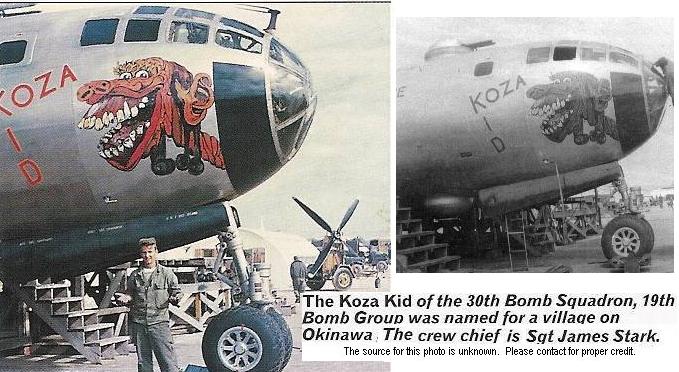 Stateside Reject [2152] 19BG-93BS:  A pejorative that was sometimes used in reference to certain persons who voluntarily elected to be stationed on Okinawa.  (How's that for being politically correct?)  The phrase, of course, also refers to the airplane being somewhat less than sterling.  While we often tend to think of the B-29 in loving, nostalgic terms, the truth was that she had more than a fair share of wicked traits.  The engines and propellers were particularly subject to fires and over speeding (runaway props).  Perhaps that is what happened to Stateside Reject when it crashed on takeoff from Kadena.