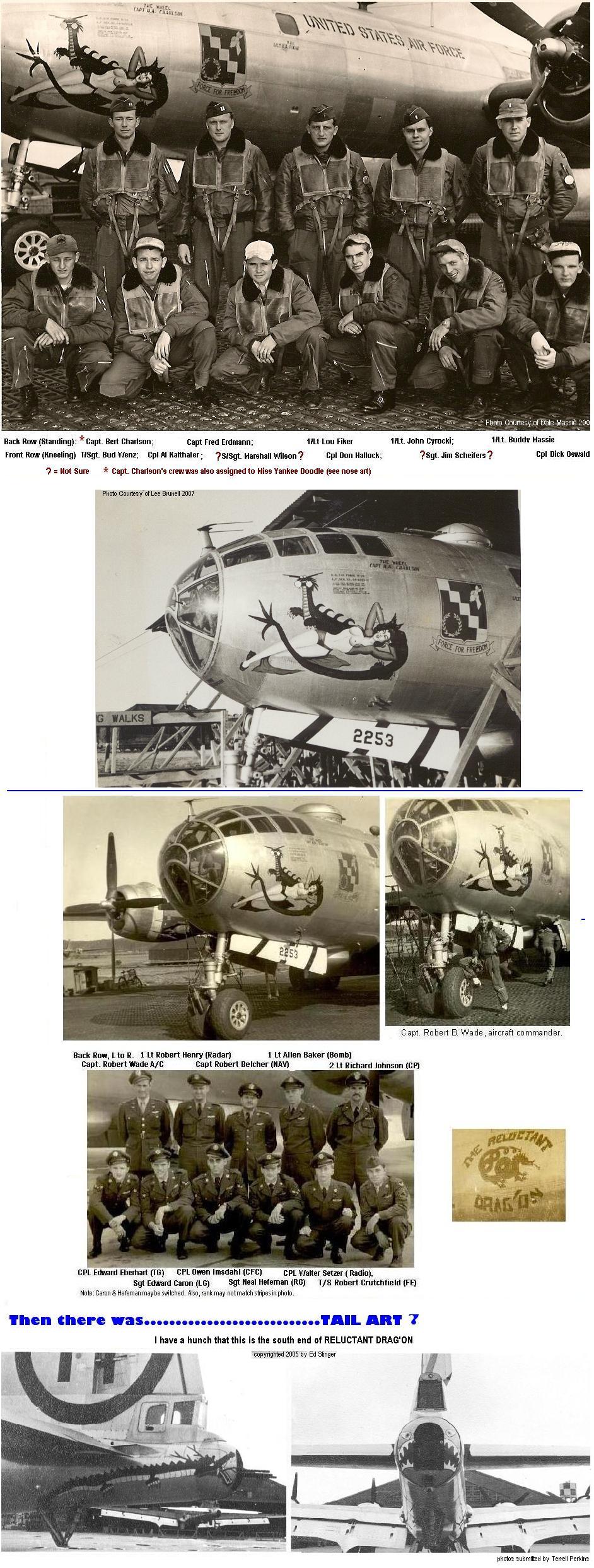 Reluctant Drag’on, The [2253] 98BG-345 BS: Troy Wade emailed: “My father, Robert B. Wade was the aircraft commander.  The co-pilot was Lt. Dick Johnson.” At least one other crew, commanded by Capt Bert Charlson, flew Drag'on.  Don Hallock completed his first combat tour in December 1951 on a lead crew assigned to this aircraft.  This also appears to be only one of a few B-29s that also sported tail art.