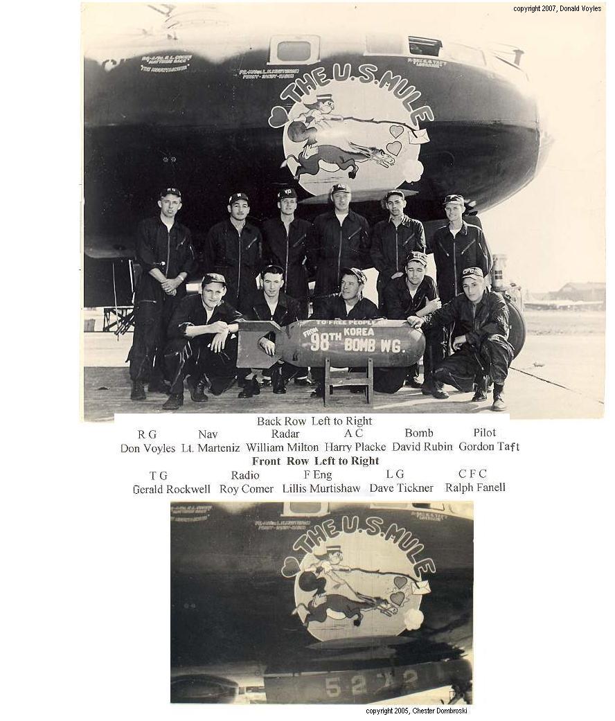 the mule’s nose. Don Voyles was a gunner on the crew that had U.S. Mule painted on the nose.