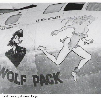 Wolf Pack [6340] 98BG: The wolf is an Air Force lieutenant and the running girl is a character from Al Capp’s Li’l Abner comic strip, aptly named “Wolf Gal.”